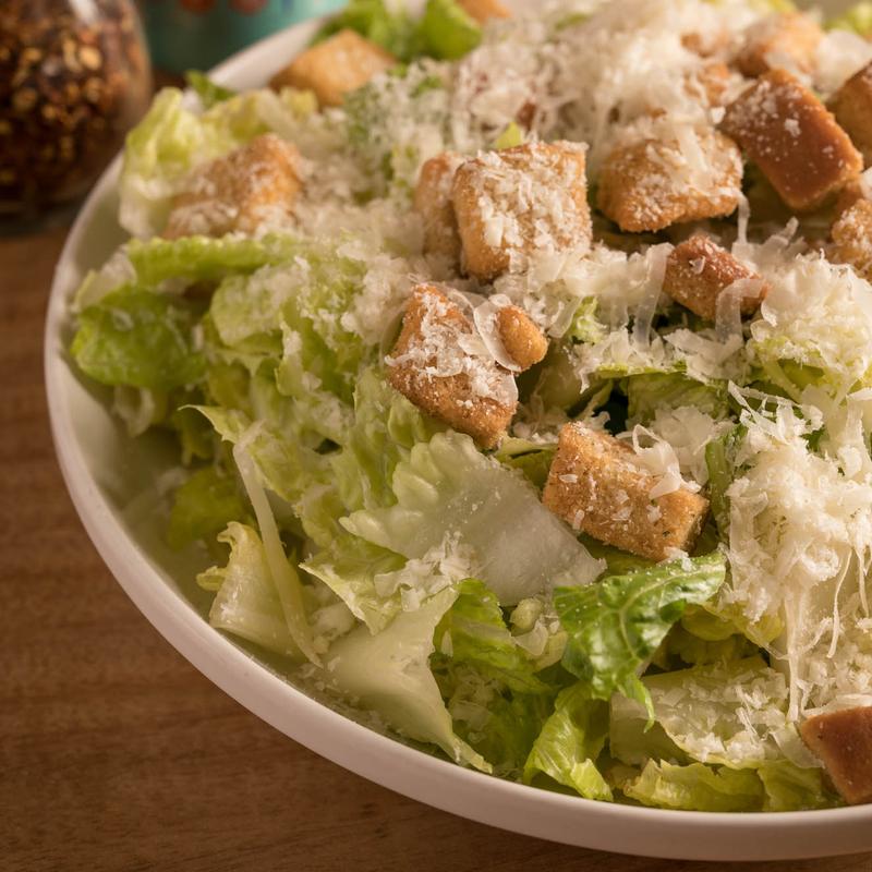 Side $2.99 | Regular $9.99 • Crisp chopped romaine with shredded Parmesan and croutons.
