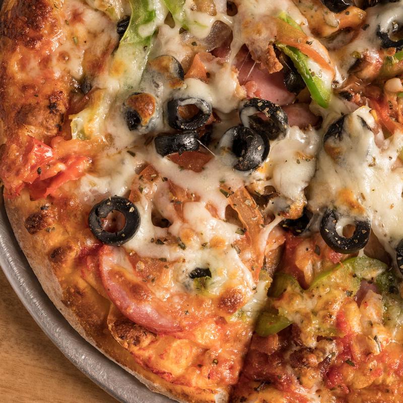10" $10.99 | 14" $18.99 | 16" $20.99 | 18" $22.99 | 30" $55.99 • Pepperoni, Canadian bacon, sausage, bacon, tomato, onions, green pepper, black olives, and mushrooms.