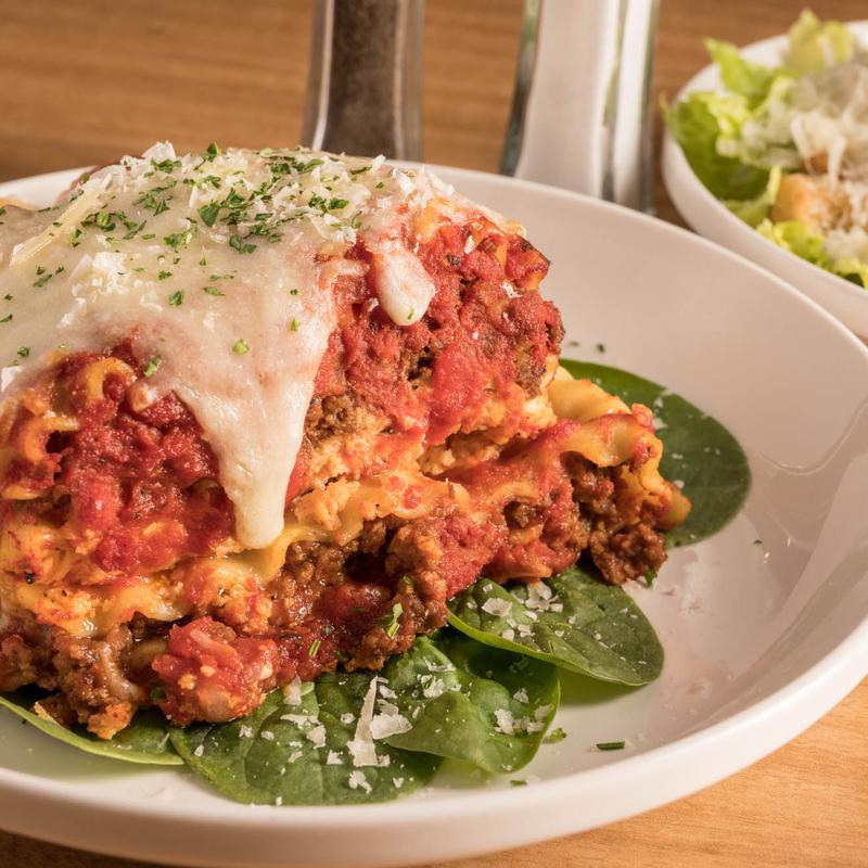 Layers of pasta, ricotta mixture, Italian seasoned beef, marinara, and mozzarella cheese. Made in-house daily.